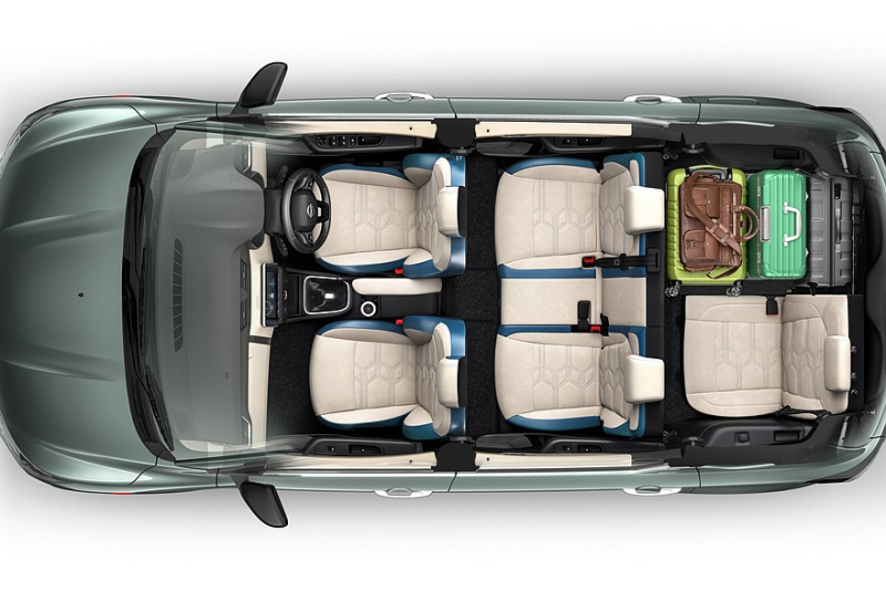 Габариты у Nissan Gravite и рестайлингового Renault Triber почти одинаковые. Длина ниссановского вэна – 3987 мм, ширина – 1734 мм, высота – 1644 мм, колесная база – 2636 мм. Паспортный дорожный просвет – 182 мм.