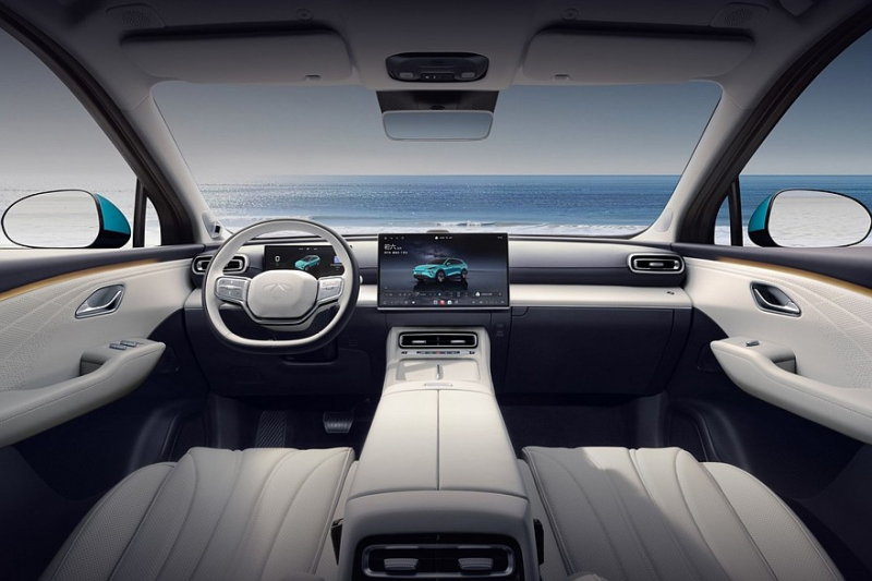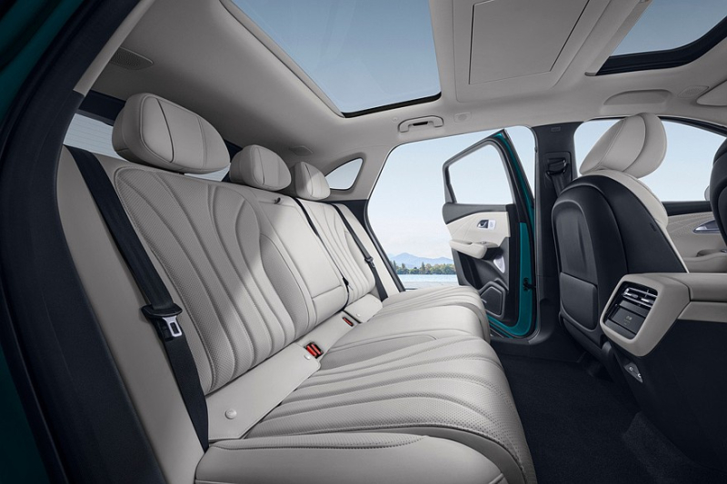В пятиместном салоне установлены раздельные экраны приборки (10,25 дюйма) и мультимедийной системы (15,6 дюйма), они идут уже в базе. В списке оборудования самого дешевого паркетника также значатся: две стеклянные секции в крыше, электропривод багажной двери, вентиляция и подогрев передних сидений, камеры кругового обзора, адаптивный круиз-контроль, системы автоторможения и удержания в полосе движения.