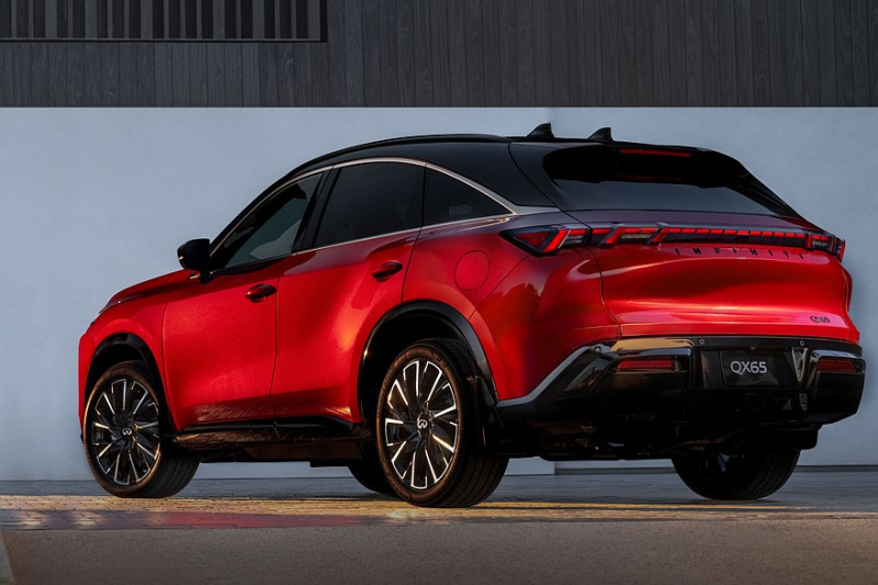 В Infiniti подчеркивают, что QX65 был вдохновлен культовым Infiniti FX (он же QX70 на излете карьеры), который считается основателем сегмента кросс-купе. На деле же это лишь пятиместная версия Infiniti QX60, хотя и со своим дизайном экстерьера. Infiniti QX65 достались двухэтажная головная оптика, оригинальные радиаторная решетка и передний бампер. Разумеется, у него еще другая багажная дверь. А задние фонари сделали в виде плашки с «насечками». Для модели предусмотрены 20- или 21-дюймовые диски.
