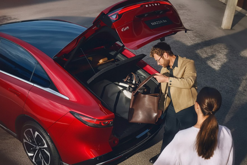В Австралии Mazda 6e представлена в двух комплектациях. В списке оборудования базовой GT значатся: упомянутые спойлер и дисплеи, панорамная крыша, электропривод багажной двери, обивка из искусственной кожи, подогрев руля и передних сидений (кресла – еще и с вентиляцией), трехзонный климат-контроль, беспроводная зарядка, камеры кругового обзора, адаптивный круиз-контроль, системы автоторможения и удержания в полосе движения. Версия Atenza – это натуральная кожа и вставки из искусственной замши.