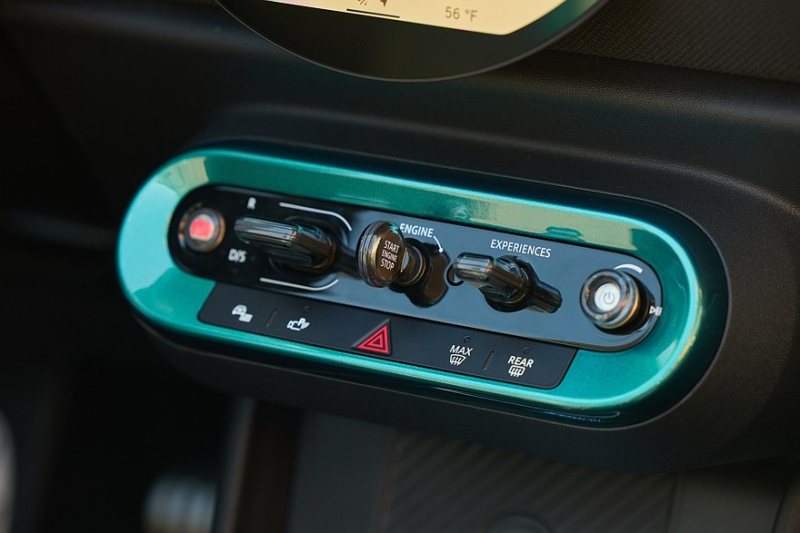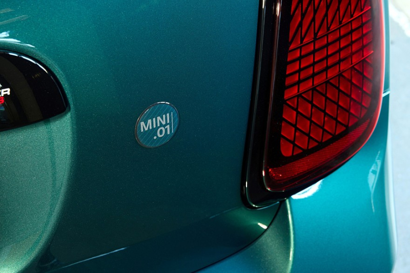 Интерьер Mini.01 получил десятки деталей, окрашенных в тот же зелёный металлик, что и часть наружных панелей кузова, — вставки такого цвета можно увидеть на передней панели, центральной консоли, сиденьях, корпусах динамиков аудиосистемы Harman Kardon, дверных картах и порогах с подсветкой.
