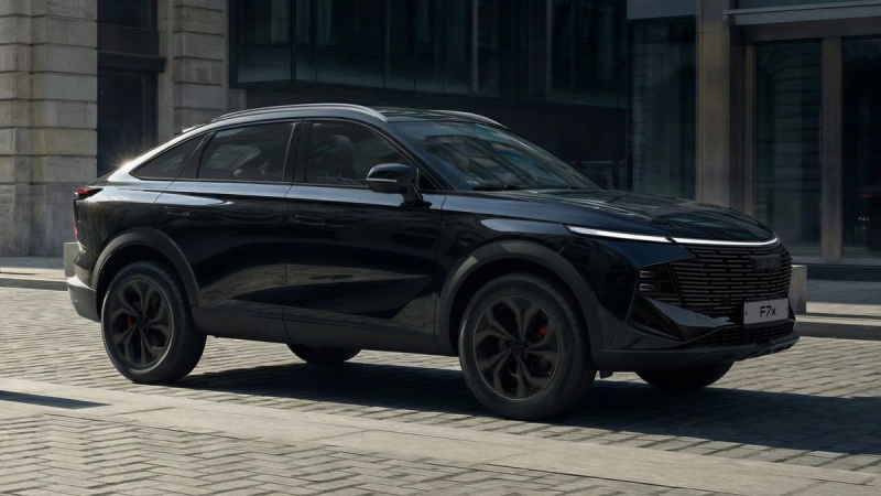 Несмотря на в основном технический характер обновления, модернизированный Haval F7x все же получил и некоторые внешние доработки. Кроссовер стал еще чернее, ведь в этом цвете отныне выполнены фирменные логотипы с названием марки и модели, решетка радиатора и 19-дюймовые колеса. На таком фоне особенно контрастно смотрятся красные тормозные механизмы и новые сдвоенные выхлопные патрубки с хромированным покрытием.