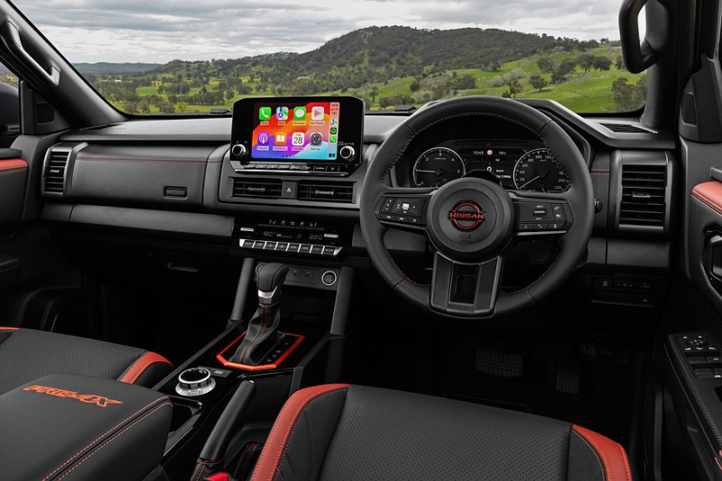 В список оборудования самого дешевого пикапа Nissan Navara вошли: светодиодные фары и задние фонари, тканевая обивка, 7-дюймовый дисплей в приборке, мультимедиа-система с 9-дюймовым планшетом, однозонный климат-контроль, восемь подушек безопасности, камеры кругового обзора, адаптивный круиз-контроль, системы автоторможения, удержания в полосе движения и мониторинга «слепых» зон. Комплектация ST – это диодные противотуманки, подогрев зеркал, кожаный руль и автоматически затемняющееся салонное зеркало. Начиная с версии ST-X появляются электропривод наружных зеркал, кожаная обивка, подогрев передних сидений, двухзонный «климат», система бесключевого доступа и кнопка запуска мотора, беспроводная зарядка для смартфона. В салоне топового пикапа Pro-4X имеется оранжево-красный декор.