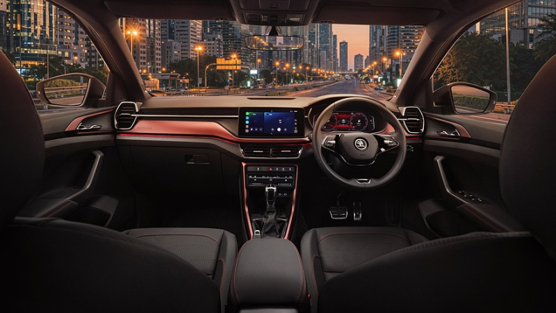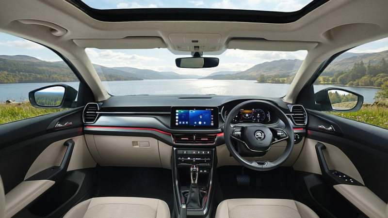 Kushaq в версиях Prestige и Monte Carlo теперь оснащается панорамным люком на крыше, а другим вариантам положен люк с электроприводом. Салон паркетника освежили за счёт иных материалов для отделки и иного декора. Модели стала доступна виртуальная приборка диагональю 10,25 дюйма, а также тачскрин информационно-развлекательной системы диагональю 10,1 дюйма. Длина SUV – 4229 мм, дорожный просвет – 188 мм, объём багажника остался прежним – 491 литр, при сложенном заднем диване грузовое пространство можно увеличить до 1405 литров.