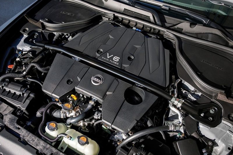 В привязке к МКП перенастроен и 3,0-литровый бензиновый битурбомотор V6 с заводским индексом VR30DDTT (на версии Nismo он выдаёт 426 л.с. и 520 Нм): на трёхпедальном спорткаре он живее реагирует на нажатие педали газа и более сочно ревёт на высоких оборотах.