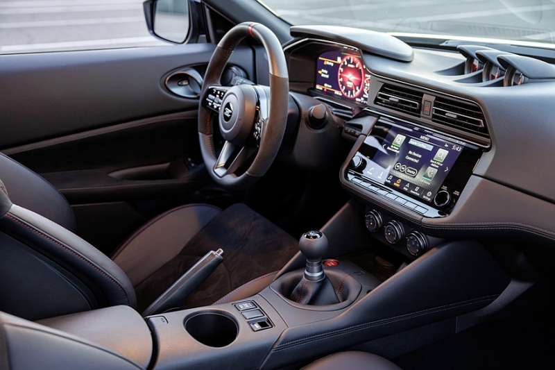 Начнём с топ-версии Nismo, поскольку ей досталось больше всего обновок. Во-первых, к ней наконец-то «прикрутили» 6-ступенчатую МКП, тогда как раньше версия Nismo предлагалась только в комплекте с 9-ступенчатым гидромеханическим «автоматом». Теперь Nissan Z Nismo по умолчанию оснащается «механикой», а АКП доступна в виде опции. Сама «шестиступка» у Nismo не такая, как у младших версий Sport и Performance, а с доработанным механизмом переключения — ходы рычага стали короче, улучшена избирательность.