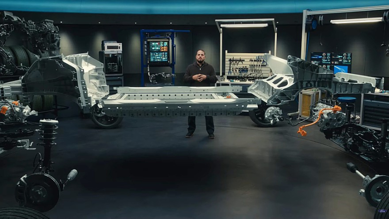 Ford Universal EV Platform имеет 400-вольтовую электрическую архитектуру и бюджетную литий-железо-фосфатную (LFP) батарею с ячейками в виде кирпичиков, они упакованы прямо в кузов без промежуточного корпусирования, что позволяет снизить массу, уменьшить номенклатуру деталей и упростить процесс сборки.