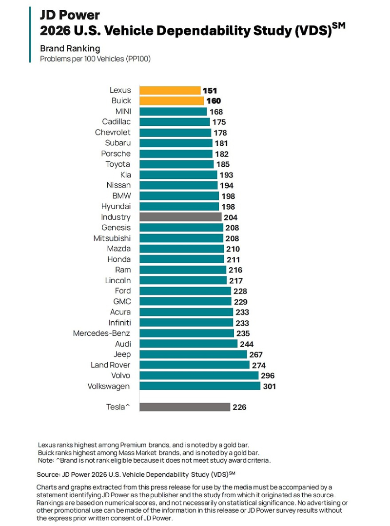 Рейтинг надёжности JD Power 2026: электроника всех достала, Mini вошла в тройку лидеров