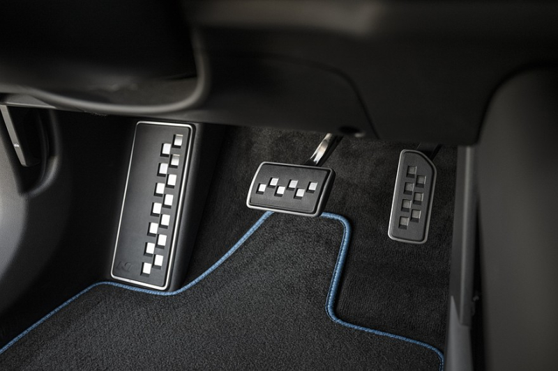 Максимальная совокупная отдача системы, в которую входит также тяговая батарея ёмкостью 84 кВт*ч, равна 609 л.с., крутящий момент – 770 Нм. В режиме N Grin Boost, который активируется красной клавишей на руле (длится 10 секунд), пиковая мощность вырастает до 650 л.с. На разгон с места до «сотни» такой четырёхдверке требуется 3,2 секунды, а её максимальная скорость составляет 257 км/ч.