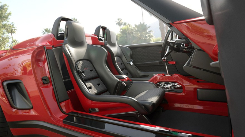 Интерьер тоже полностью новый, но он воспроизводит ключевые стилистические особенности классических Porsche 964, в том числе характерную форму передней панели и широкий щиток приборов с пятью аналоговыми циферблатами. Блоки управления современной системой микроклимата и навигацией аккуратно вписаны в центральную часть узкой полосы между боковыми дефлекторами системы вентиляции. Вместо стандартных спортивных сидений можно заказать более лёгкие и глубокие ковши в гоночном стиле. Задних сидений нет ни в каком виде, их место заняла изысканная багажная полка с запираемыми ящичками для мелочей.