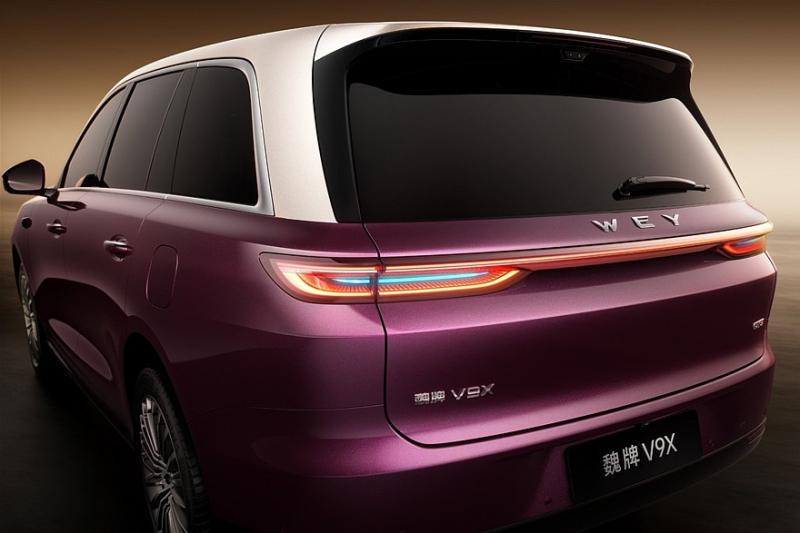 Wey V9X дебютировал в виде полноприводного подзаряжаемого гибрида. Силовая установка включает бензиновый турбомотор 2.0 (238 л.с.) и два электродвигателя. Начальная версия бизнес-кроссовера получила 400-вольтовую электрическую архитектуру, остальные варианты – с 800-вольтовой архитектурой.