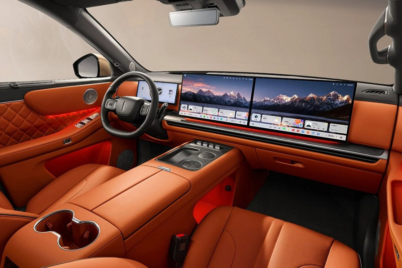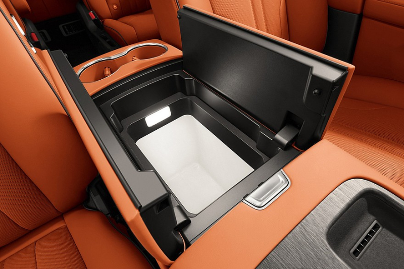 В салоне – отдельный приборный экран (12,3 дюйма) и гигантское табло, состоящее из двух тачскринов (каждый диагональю 17,3 дюйма). На центральном тоннеле расположены одна площадка для беспроводной зарядки, ряд физических рычажков и подстаканники. В самом тоннеле спрятан бокс с функциями подогрева и охлаждения. В переднюю пассажирскую дверь и обе задние двери встроены собственные площадки для зарядки смартфонов, причем с вентиляцией. Итого, у кроссовера аж четыре таких панели. И все перечисленное выше добро идет уже в базе. Мультимедиа – с искусственным интеллектом, как и прочая электроника. Даже багажник можно открыть, отдав голосовую команду.