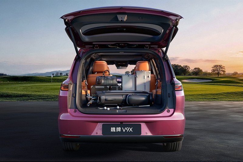 В основе Wey V9X лежит свежая платформа Guiyuan S (глобальное обозначение – GWM One). Кроссовер представлен с двумя вариантами длины и колесной базы. Версию длиной 5205 мм производитель позиционирует в качестве семейного автомобиля – если точнее, то для «состоятельных семей». Расстояние между осями у такой модификации составляет 3050 мм. Паркетник длиной 5299 мм и с колесной базой 3150 мм, по задумке маркетологов, больше подходит «руководителям», ну или бизнесменам. Ширина и высота едины для обоих исполнений – 2025 и 1825 мм соответственно. И обе же версии исключительно шестиместные. Объем багажника – 244 литра, со сложенными спинками кресел второго и третьего рядов – 1024 литра.