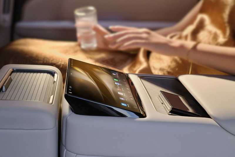 В арсенале самого дешевого седана Hyptec A800 значатся: активная подвеска с адаптивными амортизаторами, упомянутые выше дисплеи, аудиосистема «объемного звучания», двухзонный климат-контроль. В следующей по старшинству версии появляются автопилот ADS V4.1 от Huawei (с одним лидаром), «система предотвращения обледенения» дверных ручек, 12 подушек безопасности и проекционный дисплей с дополненной реальностью. За доплату седан в двух начальных комплектациях может стать четырехместным. Нужно будет лишь нажать кнопку, после чего центральная часть спинки заднего дивана опустится, а центральная же часть непосредственно сиденья – поднимется. В итоге, получится массивная «тумба» с отдельным тачскрином, площадками для зарядки телефонов и ящичком, прикрытым шторкой. Такое решение в Hyptec назвали «2+1».