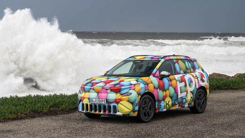 В статусе концепта Epiq дебютировал ещё в середине марта 2024 года, а в сентябре 2025-го была рассекречена внешность предсерийного прототипа грядущей новинки. Теперь чешская марка опубликовала новые снимки паркетника, сделанные в Португалии. Правда, особенности его экстерьера пока спрятаны с помощью маскировочной плёнки с весёленьким ярким принтом.