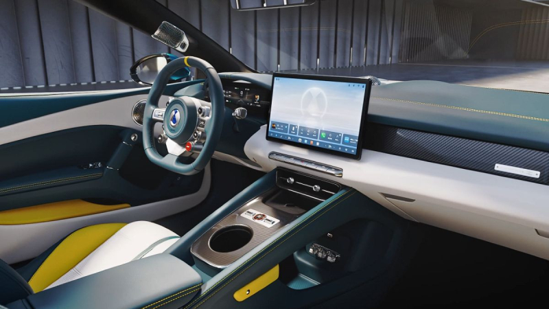 Интерьер суперкара выделяется обилием карбонового декора и трехцветной отделкой с контрастными желтыми вставками. Все физические элементы управления сосредоточены на руле с меткой нулевого положения и под планшетом медиасистемы. Ожидается, что родстер Denza Z получит трехмоторный полный привод мощностью более 1000 л.с. и фирменное активное шасси DiSus-M.
