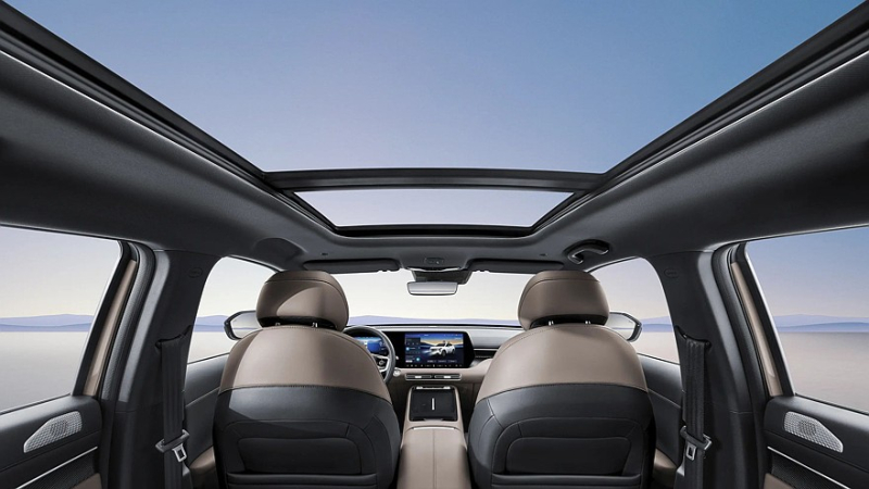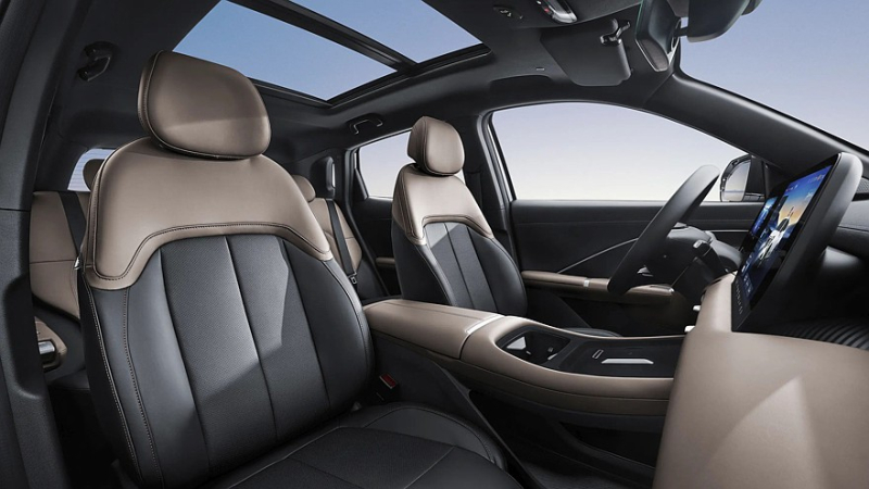 На передней панели располагается два дисплея – один, диагональю 12,8 дюйма, исполняет роль виртуального щитка приборов, а по центру располагается тачскрин информационно-развлекательной системы с тачскрином диагональю 14,6 дюйма (у топ-версии), поддержкой Apple CarPlay и Android Auto, сервисами Яндекса, включая навигацию, а также с функцией голосового управления.