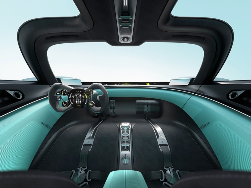 В двухместном кокпите Xiaomi Vision GT видим два рассчитанных на полулежачую посадку кресла, интегрированный в силовую структуру кузова, можно регулировать лишь положение рулевой колонки и педального узла. Вместо традиционного руля установлен штурвал с пятью экранами и двумя барабанчиками для выбора настроек. Основой щиток приборов представляет собой широкую панорамную полосу, отнесённую к лобовому стеклу, по её краям разместились экранчики камер заднего вида. На узком центральном тоннеле расположились Т-образный селектор режимов силовой установки и ряд других физических металлических клавиш.