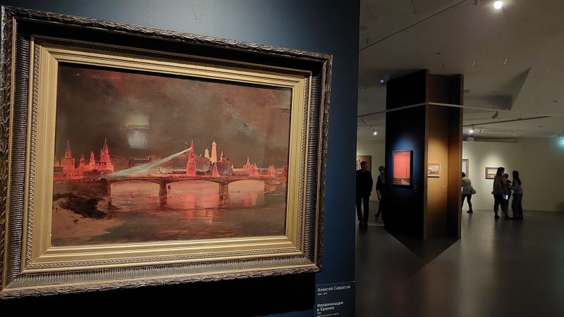 «Иллюминация в Кремле» Саврасова 1883- го соседствует с инсталляция «Мельница».