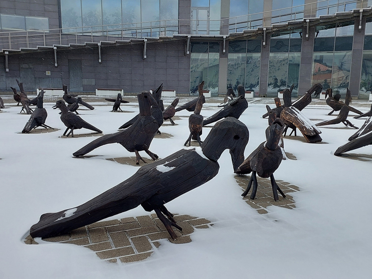 Выставка Алексея Саврасова начинается на улице: гигантские грачи прилетели к музейному входу