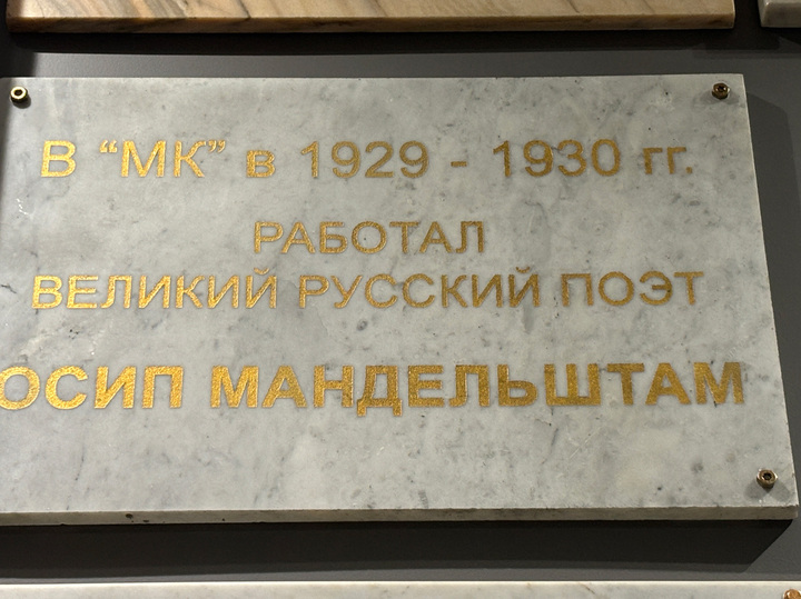 1. Здание городской газетной типографии на улице 1905 года, где в холле есть табличка, сообщающая: «В «МК» в 1929–1930 гг. работал великий русский поэт Осип Мандельштам».
