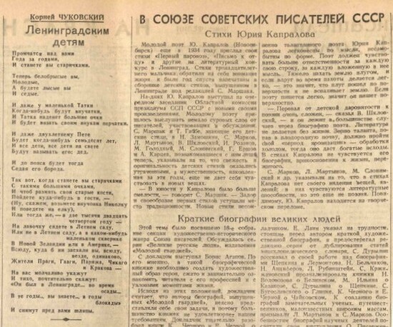 В нем впервые опубликовали самое пронзительное стихотворение на тему Блокады из всех существующих. Речь о шедевре Корнея Чуковского «Ленинградским детям», обращенном к будущему и светлому завтра, в которое верили в последний год войны миллионы советских людей.