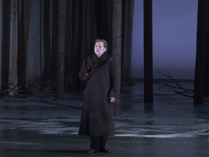 У Файнса никакой идиллии нет и в помине: сплошная рана и боль. Красавицы в кокошниках, появляющиеся как девы лесные в роще, напоминают восставших из небытия призраков. Костюмы, созданные Анномарией Вудс, весьма своеобразные: нечто вроде кожаного пальто на Онегине, шелковая темная с золотом шаль на плечах Татьяны, напоминающая не о провинциальной глуши, а о современном парижском подиуме.
