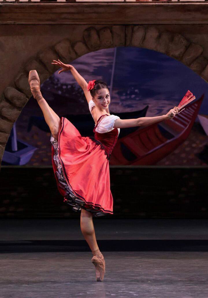 Она родилась в Новосибирске, но с отличием закончила Академию русского балета им. А.Я. Вагановой по классу Людмилы Ковалевой, известного педагога, ученицами которой были такие прекрасные балерины Мариинского театра, как Диана Вишнёва или Оксана Шапран. Еще будучи студенткой, она была зачислена стажером в труппу Мариинского театра (что случается нечасто) и исполняла там ведущие партии. Например, Повелительницу дриад в балете «Дон Кихот».