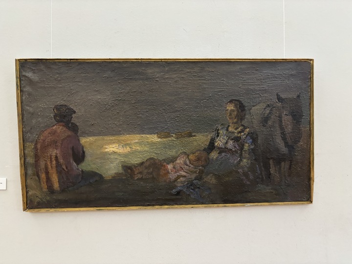 Еще один трогательный лейтмотив, шагающий буквально из полотна в полотно, — лошадь. Здесь стоит обратиться к биографии мастера, откуда мы узнаем, что отец его участвовал в Первой мировой войне, после которой столкнулся с совсем другой реальностью — коллективизация, налоги. А семью как-то кормить надо, надо пытаться сохранить землю, и лошадка стала для семьи сродни символу жизни — взрослую лошадь продавали, чтобы купить жеребенка, так и уплачивали налог.