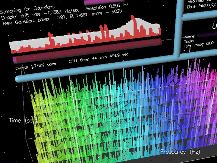 Так выглядела заставка программы SETI@home на компьютере.