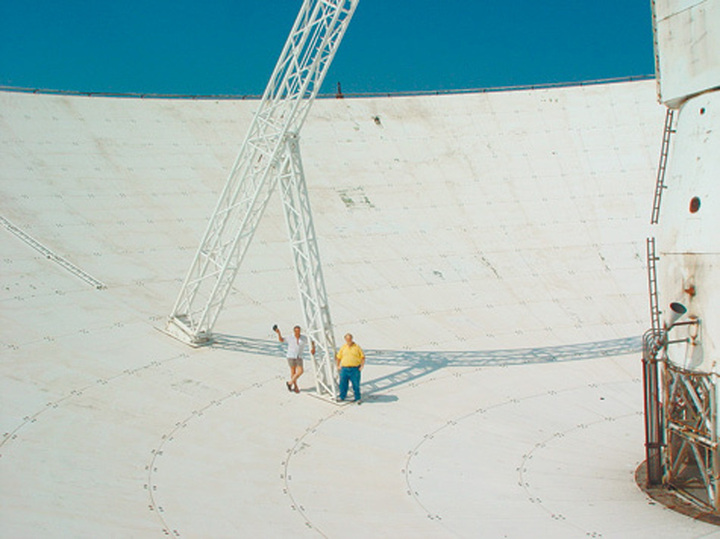 Участники программы «общения» с внеземным разумом в чаше 70-метрового телескопа в Евпатории. Фото: представлено А. Зайцевым.