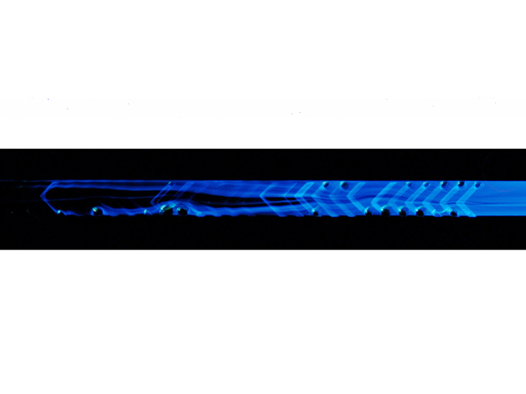 Свечение смеси люминола и хлорита натрия на микрофлюидном чипе. Источник: Глеб Симоненко.