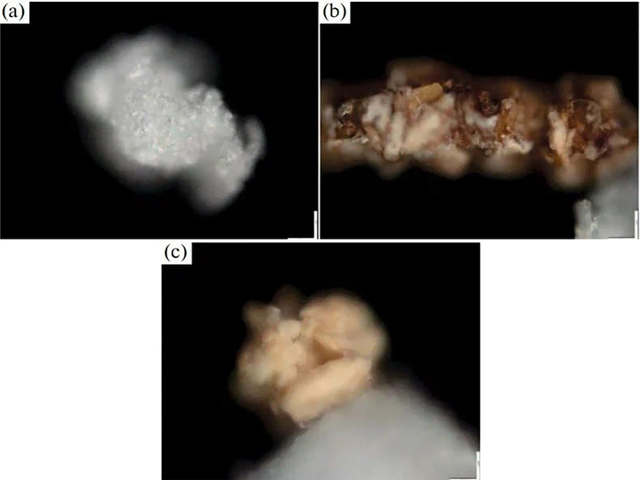 Оптические микроснимки трех основных фракций образцов микропластика, образовавшихся в результате контакта личинок Z. morio с пенополистиролом. Источник НовГУ.