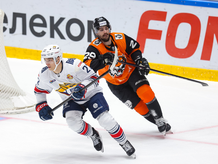 Новая неделя регулярного чемпионата КХЛ началась двумя поединками на Дальнем Востоке. В Хабаровске местный «Амур», выигрывая в третьем периоде у «Металлурга», не смог удержать преимущество и потерпел седьмое поражение подряд. Для коллектива Андрея Разина, уверенно лидирующего в «регулярке» — это уже восьмая виктория кряду. «Адмирал» потерпел шестое поражение при Олеге Браташе, так ничего и не сумев противопоставить казанскому «Ак Барсу». «МК-Спорт» рассказывает подробности.