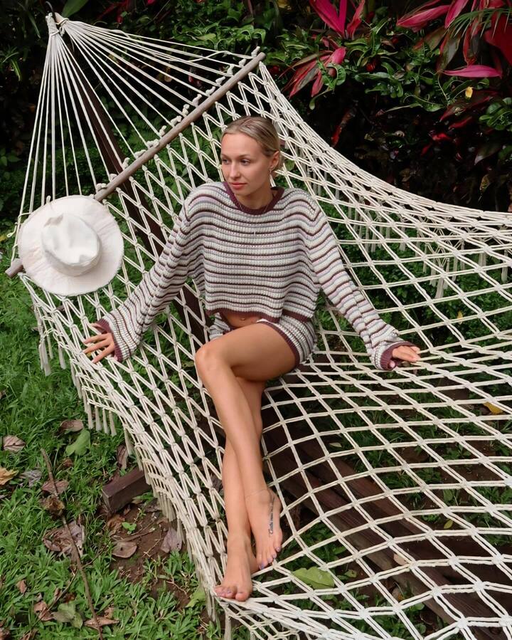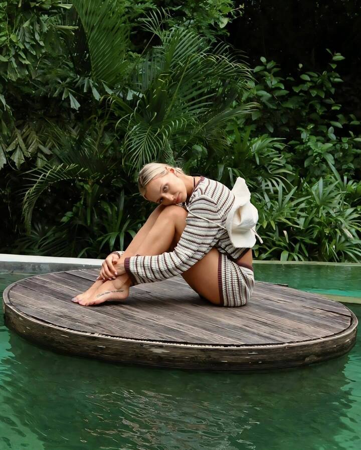 Дарья порадовала подписчиков, опубликовав серию фотоснимков, сделанных на Бали. Гимнастка надела полосатый трикотажный костюм, состоящий из укороченного лонгслива с широкими рукавами и коротких шорт.