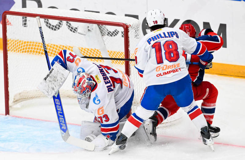 Вратарь СКА Плешков справился со всесми атаками ЦСКА в первом периоде / фото: сайт СКА