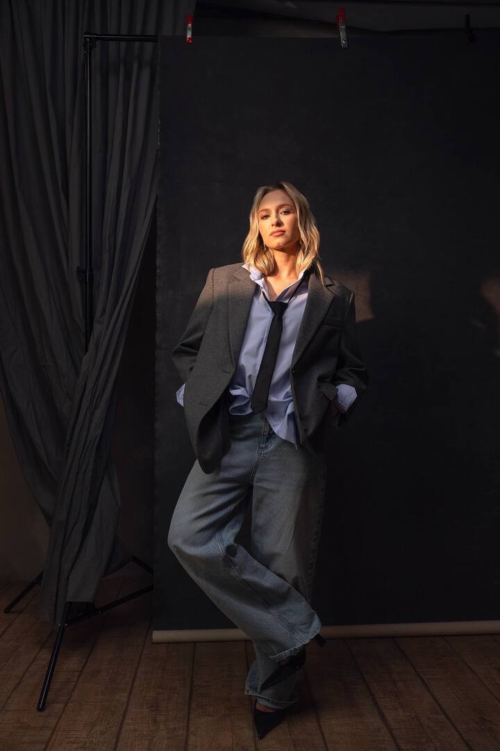На этот раз спортсменка выбрала брючные комплекты с пиджаками. Дарья показала, как по-разному можно сочетать брюки-палаццо, джинсы и пиджаки разного кроя и цвета. Всего у гимнастки получилось три интересных и стильных образа.