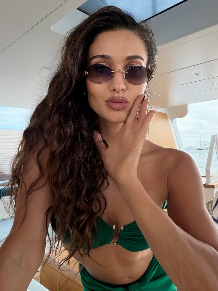 35-летняя российская теннисистка Виталия Дьяченко выбрала идеальный цвет купальника. Красивая брюнетка попозировала на яхте в изумрудно-зеленом бикини.