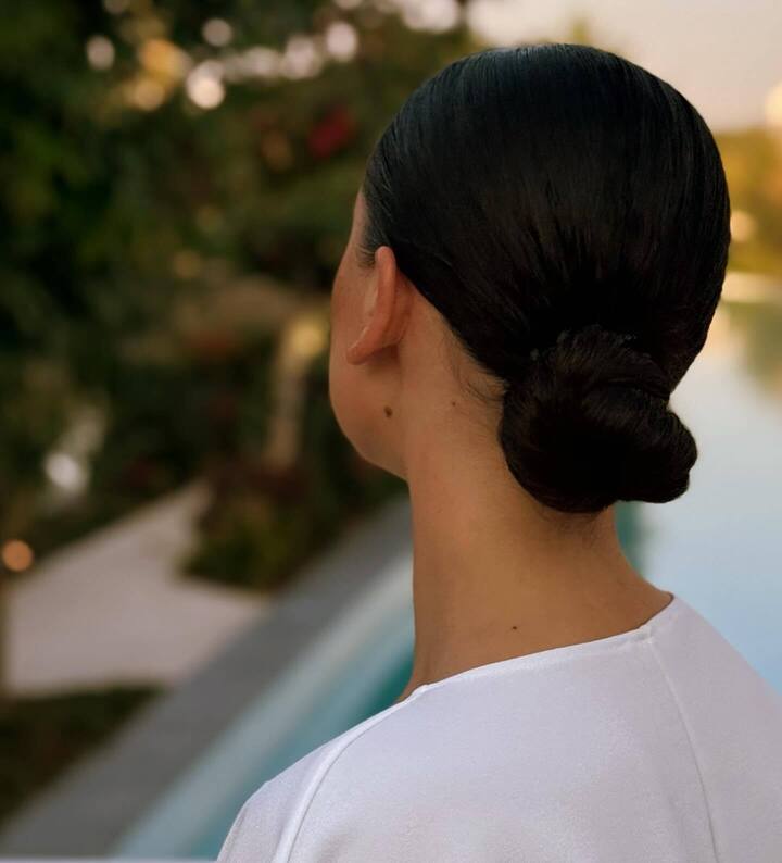 Гимнастка сделала образ завершенным, собрав волосы в низкий пучок и сделав едва заметный макияж. Для некоторых кадров Крамаренко надела солнцезащитные очки.