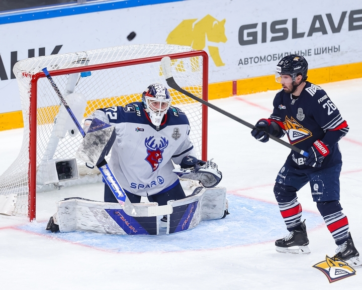 Нижегородский игрок опасно атакует ворота «Металлурга» / фото: сайт КХЛ
