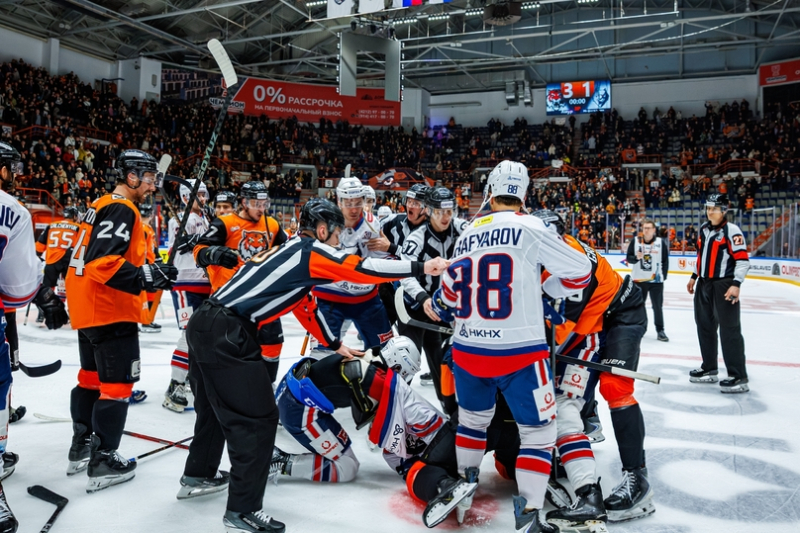 Хабаровский «Амур», одержав пять викторий в шести матчах (на утро 5 марта. — Ред.), возродил уже казалось бы потухшую интригу в Восточной конференции. Дальневосточные хоккеисты продолжают бороться за право стать одним из участников Кубка Гагарина-2026, сократив свое отставание от идущей на восьмой позиции «Сибири» до трех очков. Причем «тигры» буквально бьются со своими соперниками не только все 60 минут игрового времени, но и делают это и за его пределами.