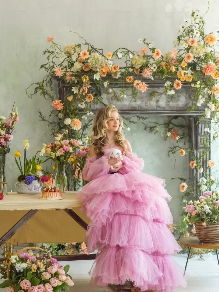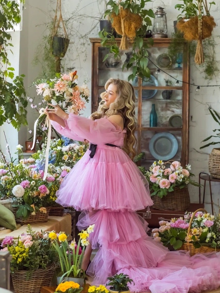 На страничке Арины в соцсетях появилась серия фотоснимков, сделанных в студии, украшенной цветами. Парсегова предстала перед камерой в прелестном розовом платье с пышной длинной юбкой и шлейфом.