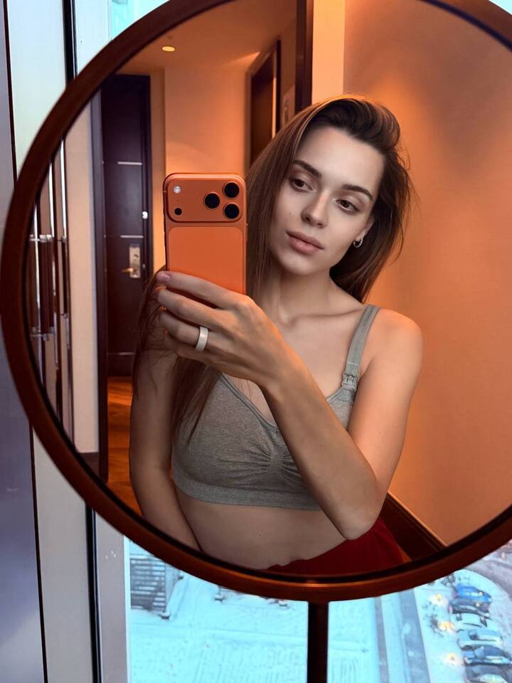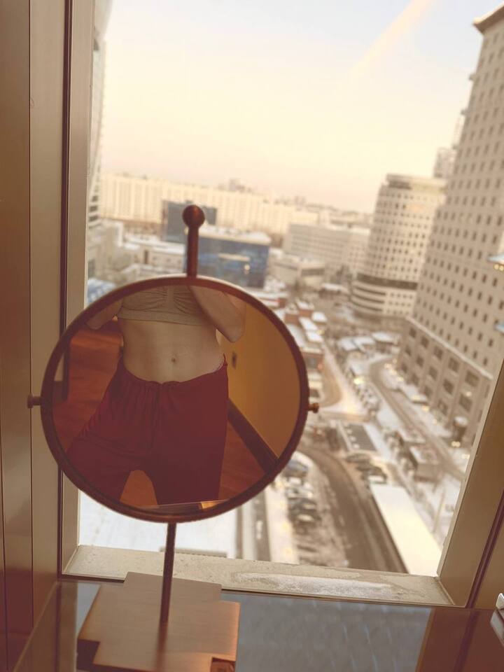Сотникова выложила в соцсети серию фотографий, сделанных в январе. Аделина сняла на телефон свое отражение в зеркале.