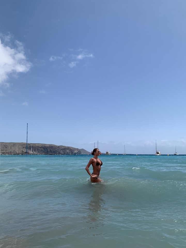 Перед купанием Анастасия собрала волосы в пучок и надела солнцезащитные очки. Гимнастка позировала, красиво прогибаясь и демонстрируя идеальные линии фигуры и рельефные мышцы.