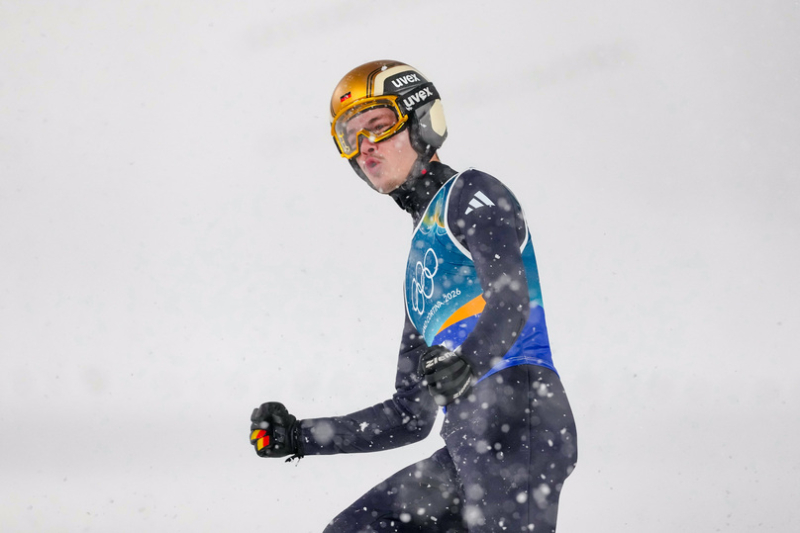 Прыгун из Германии в командных соревнованиях на Играх-2026 / фото: AP