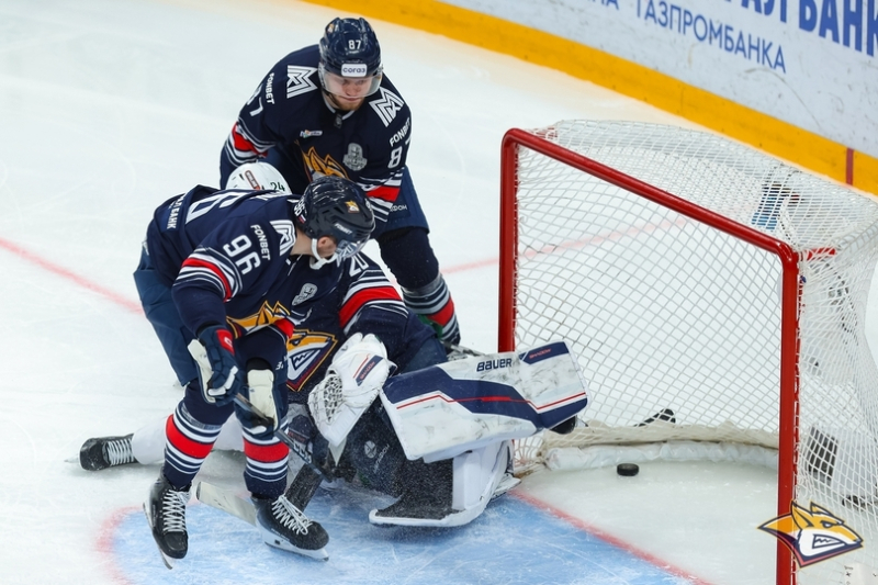 Шайба в сетке ворот Александра Смолина в первой игре серии / фото: сайт «Металлурга»